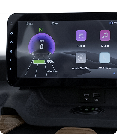 12.3-inch touch display showcases ultra-clear functions such as battery level, speed, MP3, MP4, reverse camera, CarPlay, Android Auto, and more. It also uses anti-glare technology, ensuring clear visibility under all sunlight conditions during driving.