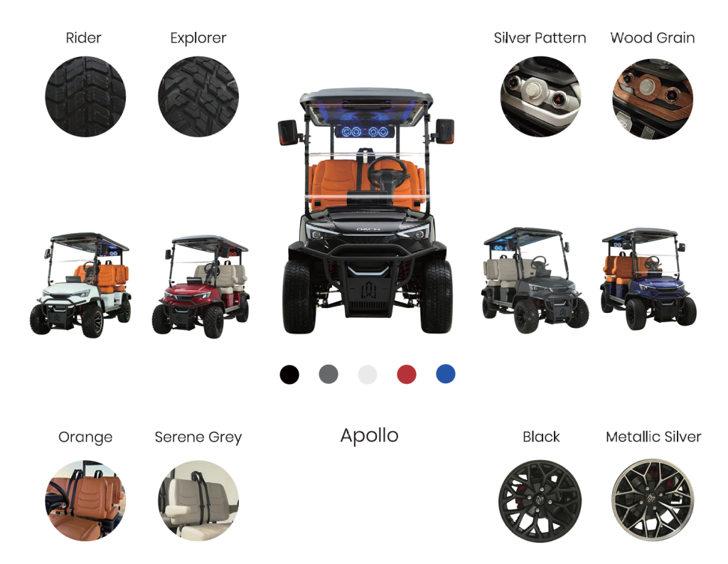 The Dach Apollo G4 gives owners plenty of visual and style customisation to make the vehicle uniquely theirs. You can choose from multiple exterior colour options such as Grey, Red, White, Black, Blue and Chameleon to suit your personal taste. The interior also offers seat colour choices to complement your look, and this can be matched with bespoke styling throughout the cabin. On the wheels and tyres front, the Apollo typically comes with stylish 14″ alloy wheels and you can select between street or all-terrain tyre options to tailor performance and aesthetics to how and where you’ll be driving. Additionally, there are mag (wheel) design choices that add further individuality and flair to the vehicle’s overall appearance.